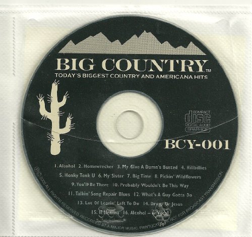 Big Country #1 COUNTRY Compilation Karaoke CD&G CD from the Brand New BIG COUNTRY Series (BCY - 001). This factory manufactured CD comes in a plastic jewel sleeve with printed artwork, plays the music without the lead vocals and displays the lyrics on a Karaoke CD&G player. These songs are not preformed by the original artists but are very good quality re-productions.